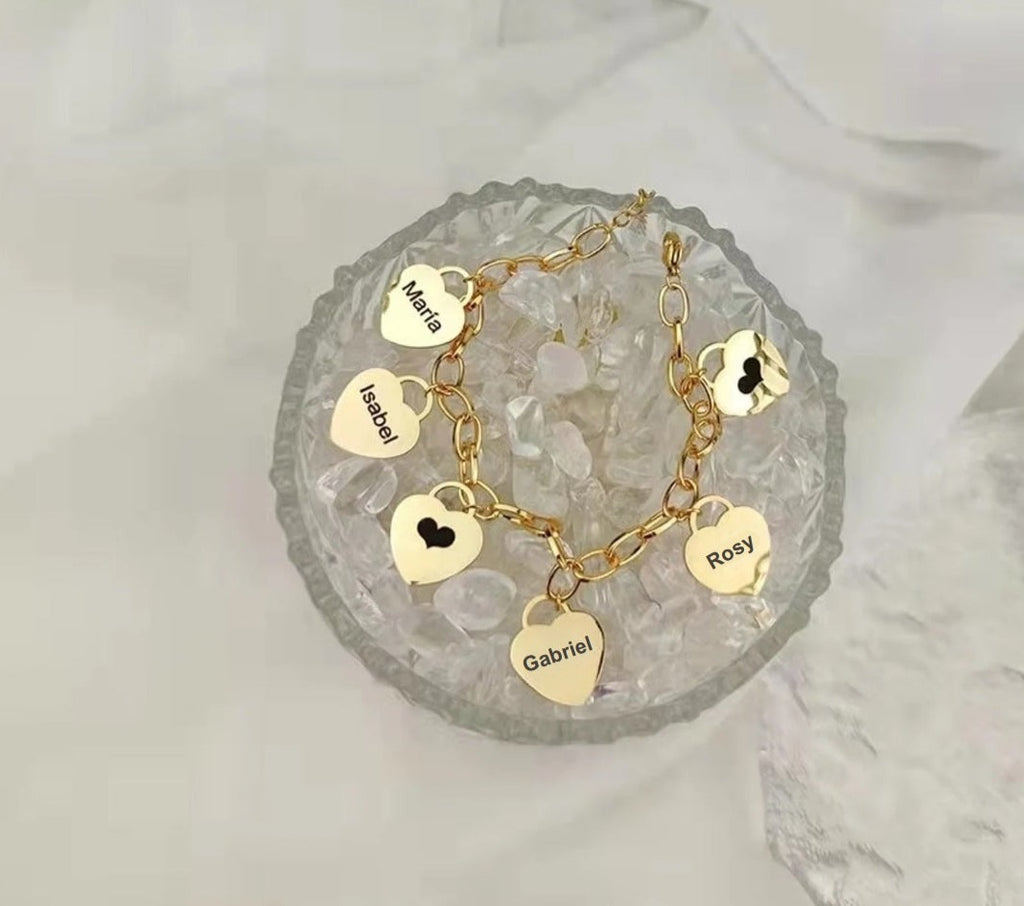 Grave os nomes da sua família no pingente dessa linda pulseira e leve seus amores com você no dia a dia.