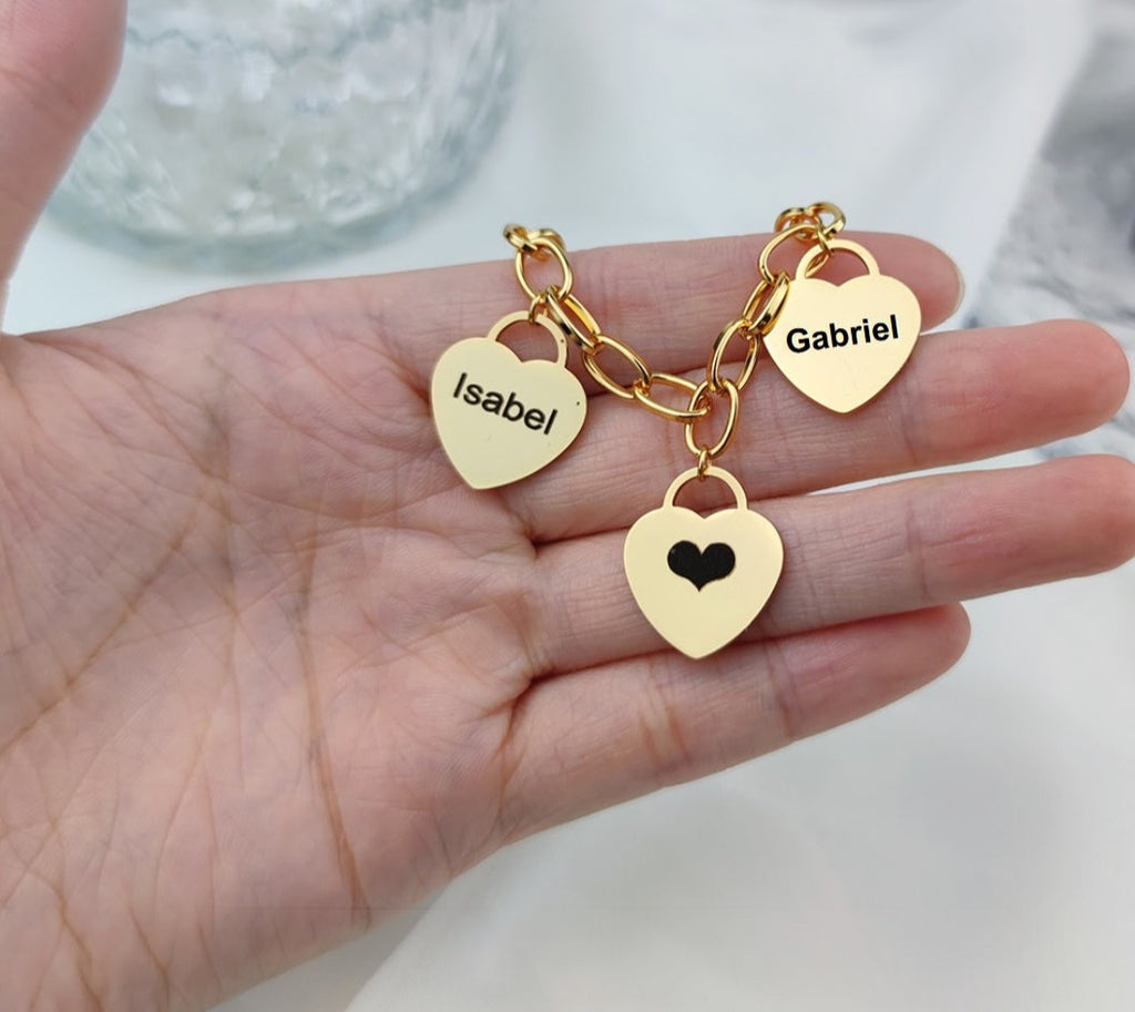 Pulseira Corações da Vida - Personalizável - Gravação a Laser - Aço Inoxidável / Folheado a Ouro.